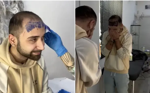 28 Abril 2023 Hombre calvo se tatuó un flequillo para que nadie notara su calvicie, pero lloró con el resultado