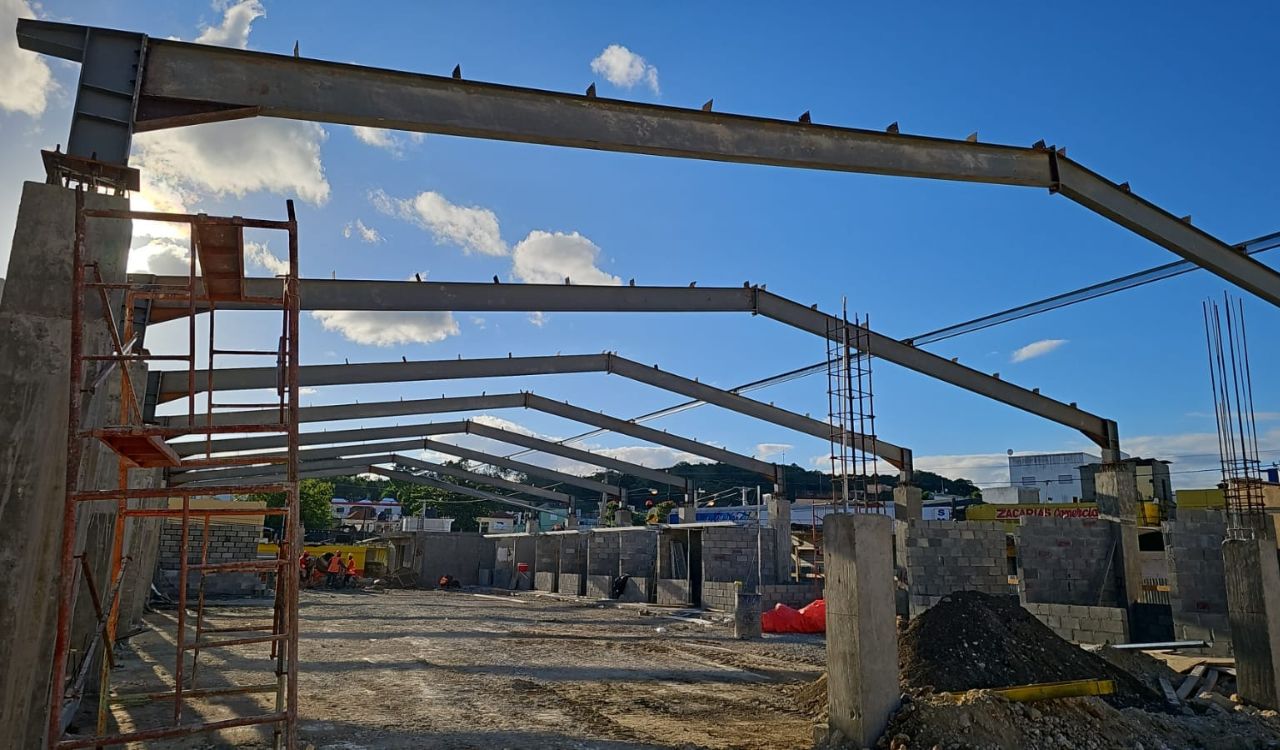La modernización de la nave en el Mercado Modelo de San Cristóbal se encuentra en pleno desarrollo, con notables avances tras la colocación de perfiles de ala ancha para el techo metálico. Este espacio renovado albergará un total de 48 locales comerciales, contribuyendo al impulso económico de la zona.