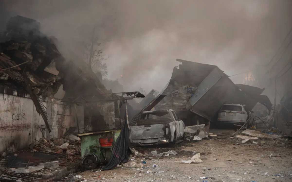 Un penetrante olor satura los alrededores de la zona cero, donde la trágica explosión cobró la vida de al menos 34 personas en la provincia San Cristóbal. La zona devastada ahora también enfrenta la presencia preocupante de gusanos y moscas que invaden las aceras y bordillos.