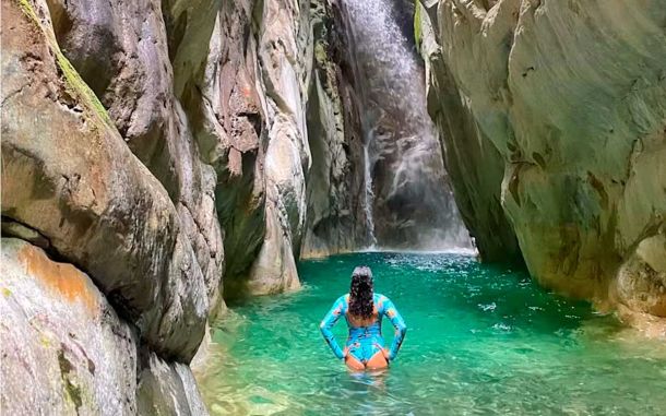 Uno de los atractivos naturales de Los Cacaos es el Tabernáculo La Piedra, una cascada que baja por el río de color verdoso, que brinda buenas fotografías para el insta Además está La Taina, otro de los lugares buenos para visitar en aventura.