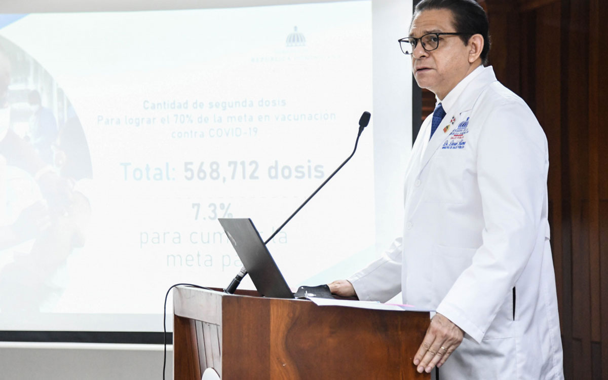 Durante la rueda de prensa, el ministro de Salud Pública también manifestó que en la República Dominicana se han aplicado 13,480,235 dosis de vacunas contra la COVID-19. Esto abarca el 76.7% de la población con la primera aplicación y un 62.7% con segunda dosis, por lo que solo resta aplicar 568,000 vacunas (7.3%) para alcanzar la meta país propuesta en 10 meses.