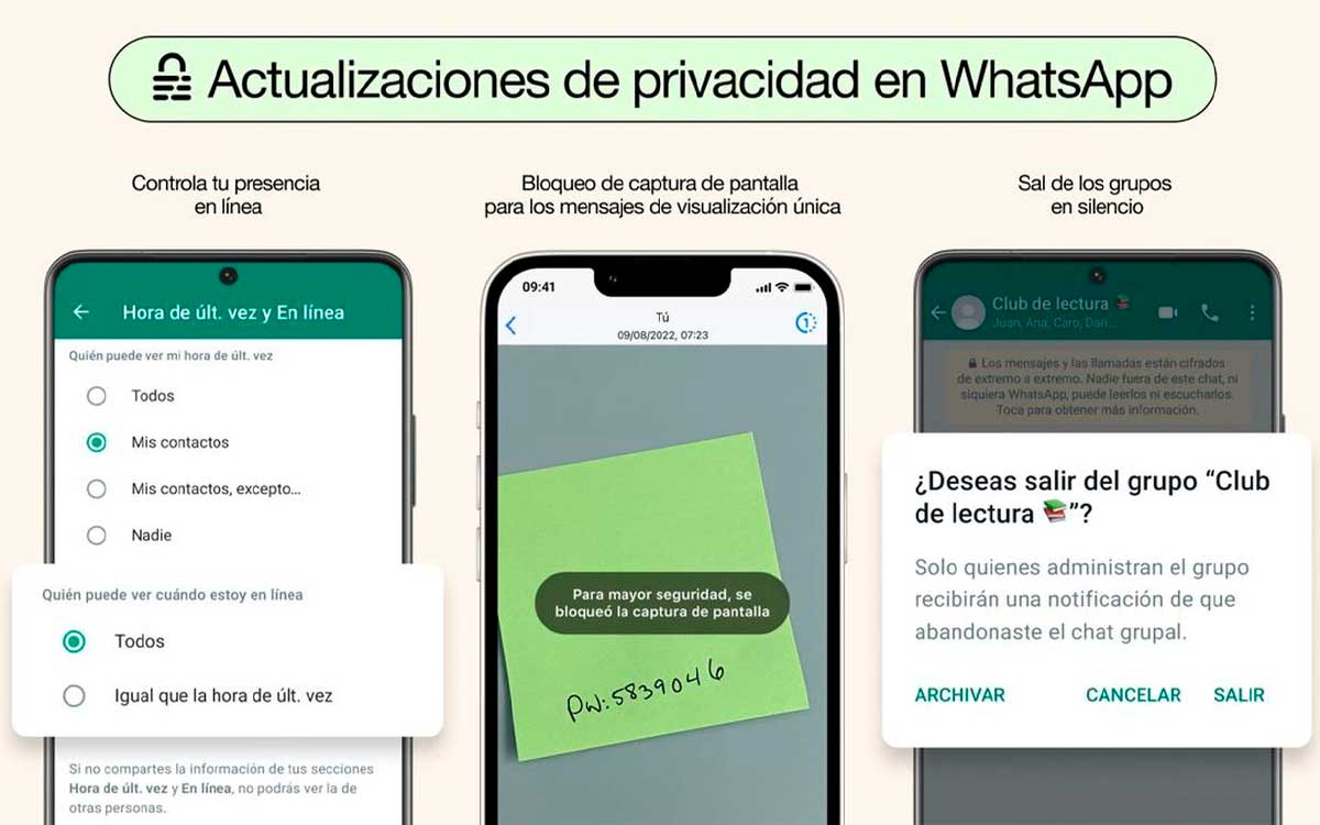 - Por último, se podrá bloquear que otros usuarios hagan capturas de pantalla de mensajes que se mandan para ser vistos una sola vez.